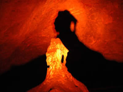 顾名思义,神仙洞是神仙居住的地方。“真人不露面”走了这么长一段距离,还没见到神仙的真容,我们看的不是被帷幕遮隐,便是形象化的钟乳石、石笋。清代文人崔介石说:“二州何处问神仙,彻天机即在眼前”。看神仙,不要只看那似像非像的躯壳,要看他们的灵魂才是他们的真容。请看看这位转世三次还没有名气的神仙吧!他最早的形象是清代的官吏,你看他像不像“虎门硝烟”的林则徐?后来又成了一位博士,第三次转世却已是现代留着高高刘海的时髦女郎了!