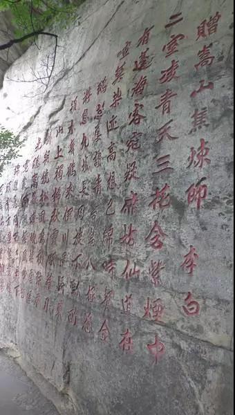 今人登嵩山峻极峰途中,可欣赏刻在中岳行宫西南峭壁上的这首诗。