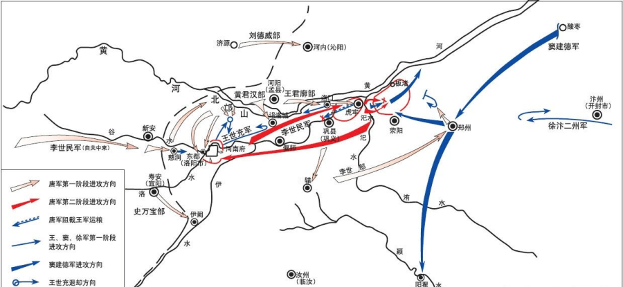 到了隋朝末年,虎牢关再一次展露出它的实力。隋炀帝死后,王世充占据洛阳称“郑”,窦建德在河北称“夏”,李渊攻克长安称“唐”,三方割据。为一统天下,唐率先向王世充发起进攻。王世充接连败退,穷途末路之时,求救于窦建德。李世民抢占虎牢关(时称武牢关),以3000余人,大败窦建德十万大军。李世民借此获得“一战擒两王”的美名,为唐一统天下铺平了道路。