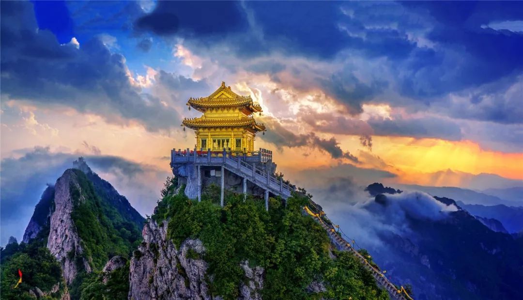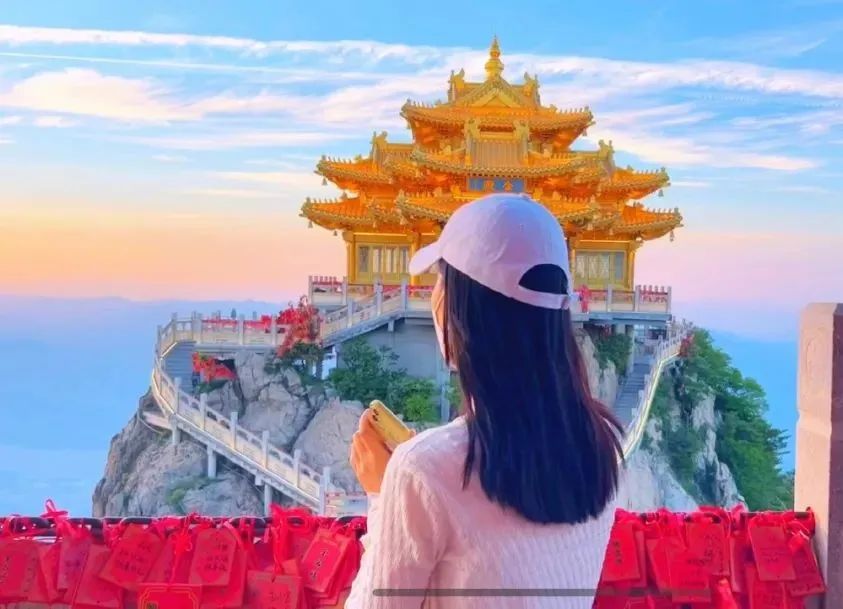 金顶道观群是老君山文化景观的核心区域,屹立在山顶的金殿也因为天气的不同而拥有着不同的美感。晴空下的金殿恢弘大气、光彩照人;阴天里的金殿庄严肃穆、充满了神秘感;如果再遇到云海或日出的加持,金殿则犹如云上仙宫一般,让人流连忘返。