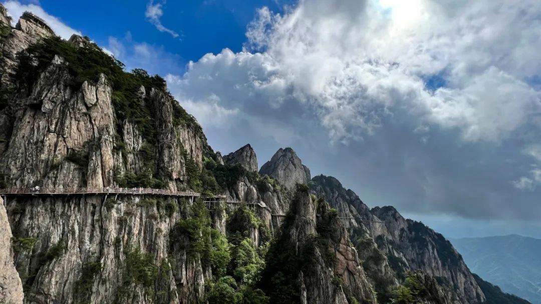 十里画屏是老君山自然景观最具代表性的景点,形成于19亿年前的大陆造山运动,沿途景观星罗棋布、相映成趣,形成了步移景异的神奇景象,独特的地质构造也形成了这一片花岗岩峰林 “远眺成林,近观成峰”的罕见奇观,被人们形象的称为 “扩大的盆景,缩小的仙境”。