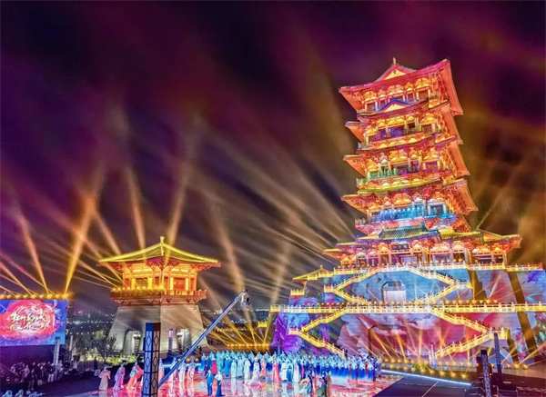 3D投影秀是通过“应天门建筑+激光投影+立体声+灯光”的表现手法,将音乐、影片、建筑、历史融为一体,打造一场关于洛阳千年历史变迁的视听盛宴。