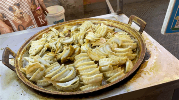 除了“小街天府”,周边还有非物质文化遗产小吃——西工小街锅贴不容错过。锅贴量大肉多,脆嫩多汁。