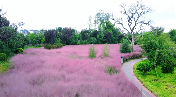 一抹嫣粉灿若霞,风吹乱子舞青纱。双拥主题公园内,粉黛乱子草也迎来“粉红佳期”。是草却如花,粉粉嫩嫩,如烟似纱。