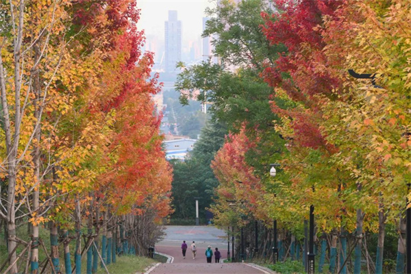 除了到大鸿寨景区看红叶,还能去中央公园看看五彩斑斓的彩叶。此时恰是彩叶植物最佳观赏期,大量的彩叶树在温差的作用下逐渐变色,放眼望去,令人心旷神怡。