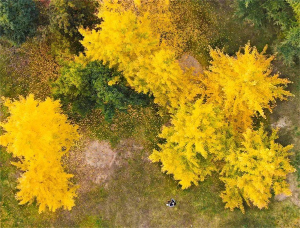 从人民公园的南门进去,胡公祠前两排高大的银杏林,每到金秋,遮天蔽日的银杏叶,笼罩出一个金灿灿的世界,美得让人挪不开眼睛。