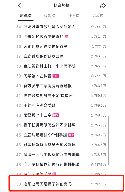 洛阳牡丹甲天下,济洛两岸一家亲,济源猴山五龙口西游仙魔团西游仙魔团闪现洛阳牡丹文化节,引游客关注。登上抖音热榜前50,730万+的话题热度#洛阳这两天是捅了神仙窝了么!