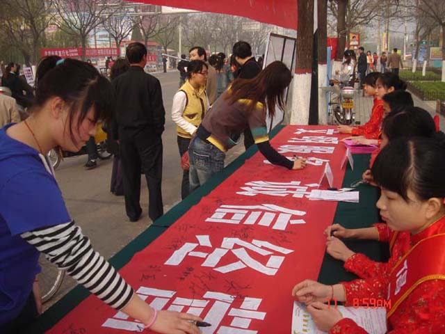 在宣传活动现场,由许昌市48家旅行社、星级饭店、旅游景区精心制作的60多块展板,图文并茂的展示了各种不文明行为,各旅游企业还积极向市民宣传推介许昌旅游景区、促使市民更多的了解本地旅游景区,为五一“黄金周”出游提供更多选择。在旅游咨询、旅游投诉台前,市旅游监察大队、旅游质监所的工作人员,耐心细致地回答游客提出的各种问题,接受旅游咨询、投诉50余件,并发放宣传彩页1000多份。旅游从业人员和市民群众积极响应文明旅游号召,踊跃在横幅上签下自己的名字。