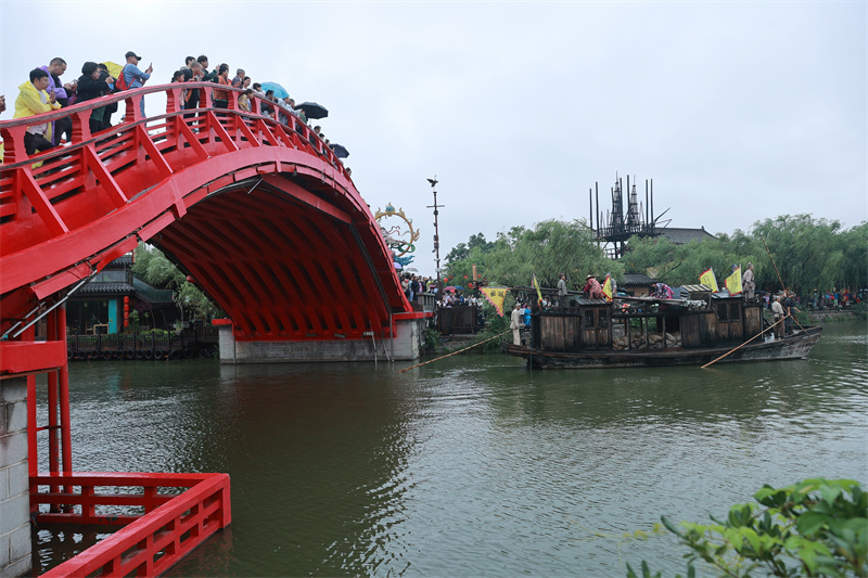 5月28日,开封细雨霏霏。各景区人头攒动,来自各地的游客冒雨沉浸式感受宋“潮”文化,体验古城美景。