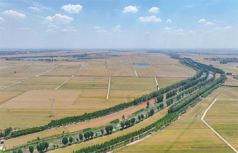 漯河市郾城区孟庙镇赵阁村附近金色麦田里,风吹麦浪,麦穗飘香,一派丰收在望的喜人景象。